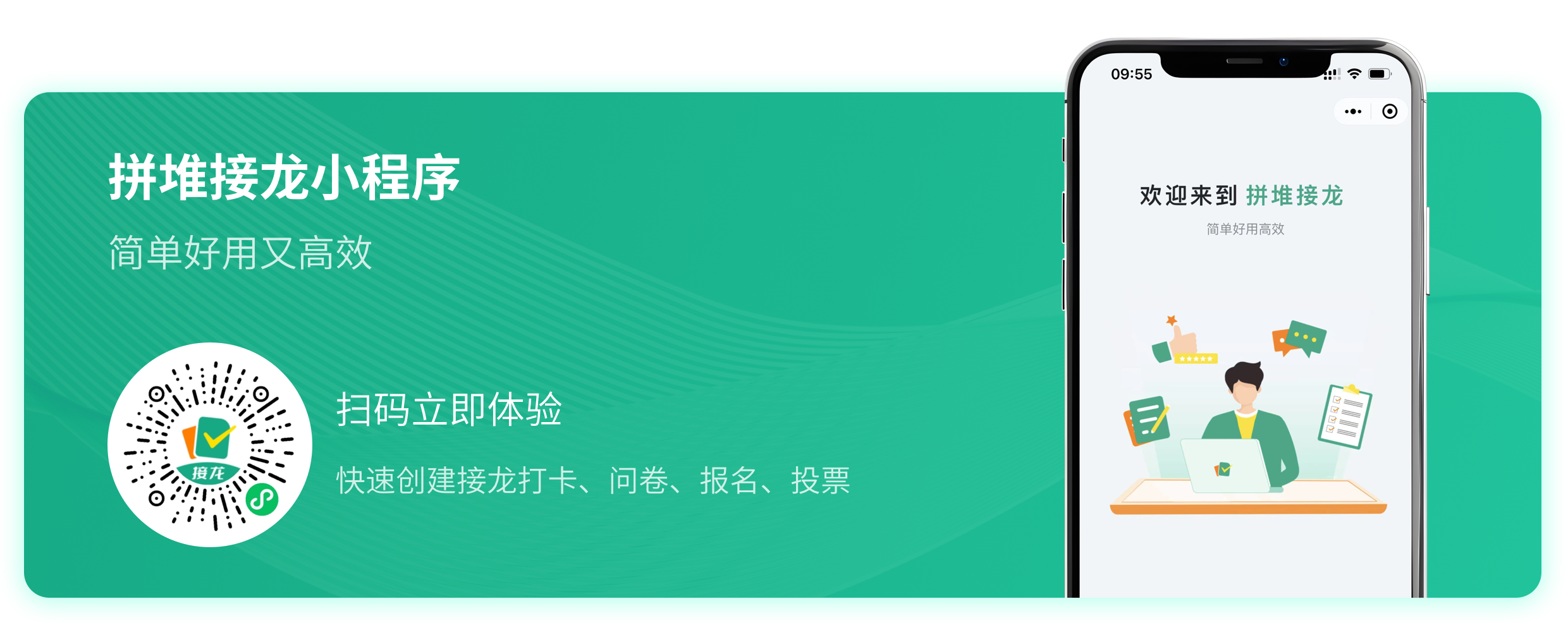 快速創(chuàng)建接龍打卡、問卷、報名、投票等,拿來即用省時省力